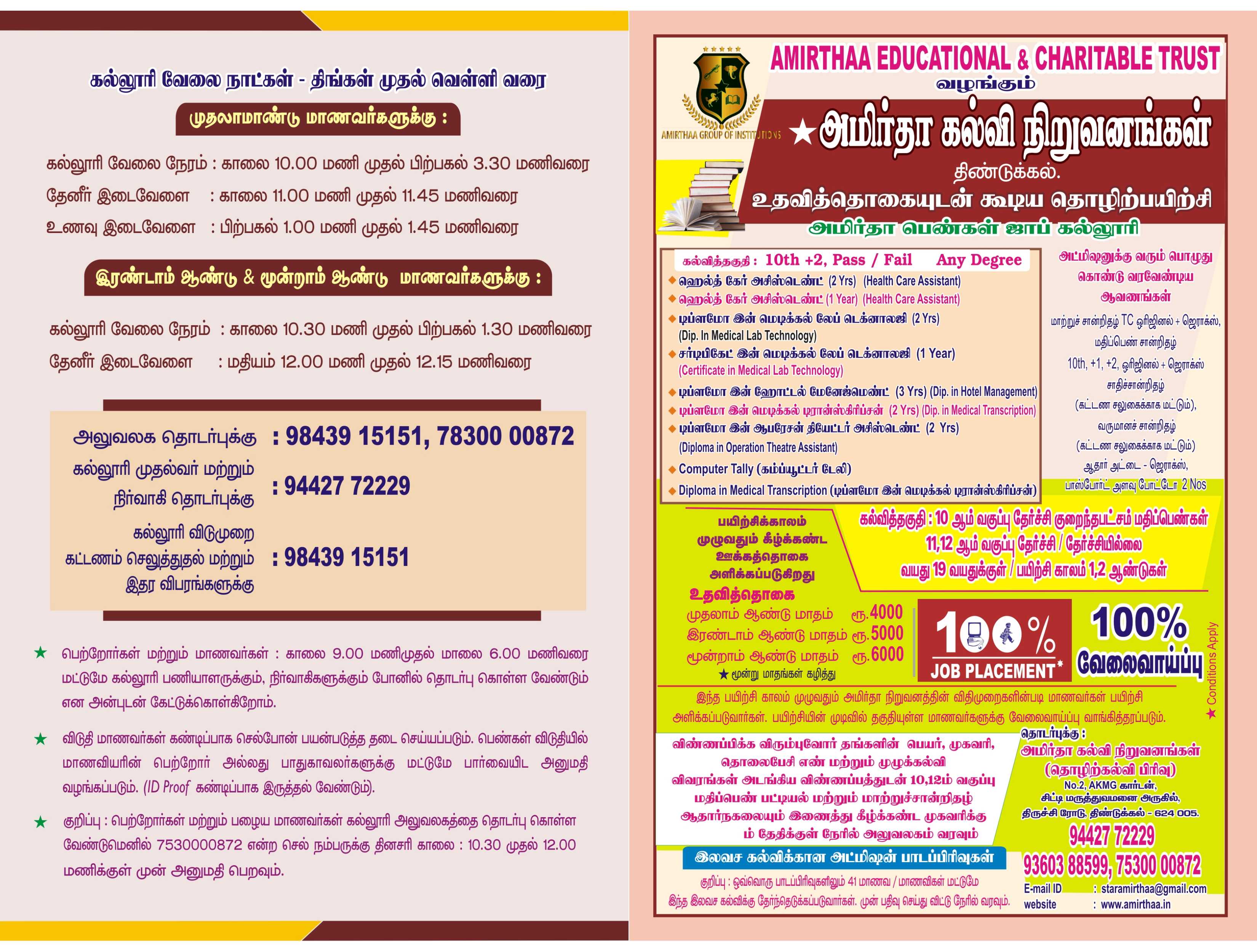 Amirthaa Educational Institution strives to match the repute that the college is distinguished for. The Placement Cell endeavours to serve as a holistic platform to bridge the gap between potential candidates, prestigious companies and prospective employers.